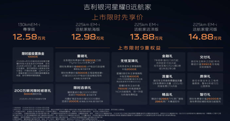 吉利银河星耀8远航家上市!限时先享价12.98万起续航智能双提升