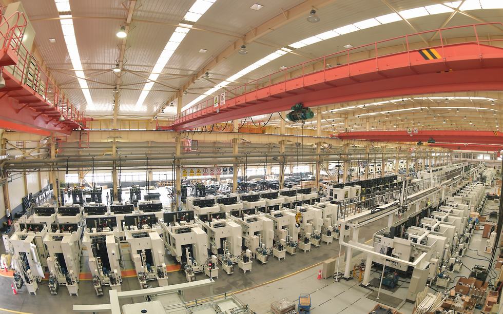 东风设备制造有限公司生产车间里,即将交付客户的产品整齐排列 刘鸿飞/摄