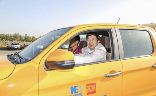 实车测试环节,江淮汽车工程师给评委们讲解搭载在帅铃i3皮卡车型上的新能源动力系统