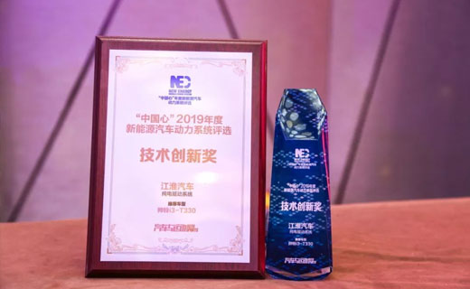 江淮汽车纯电驱动系统获“中国心”新能源汽车动力系统评选技术创新奖