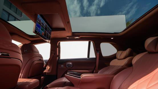 当然,在我看来,家里有宝宝的朋友可能更喜欢昊铂HL的内饰。因为它的内饰大量选用绿色环保工艺材料,加上无风感空调、紫外线杀菌冷暖箱等“适合宝宝”的功能配置,让每一次出行都像是专属的母婴级健康头等舱,带给家人更舒适的体感享受。而且整车拥有可观的大平层面积,4.88㎡相当于一个会客厅,纯平的地板不再压抑身体,配合20mm零感慢回弹坐垫,以及二排至多125°电动调节靠背,乘车舒适性让人放松惬意。座椅部分,整体采用超柔Nappa真皮面料包裹,采用大靠背、大坐垫设计,拥有宽达1131mm的腿部空间,并配有18点热石按摩功能,系统融合中医穴位按摩,按摩力道、手法都接近真人指压手感,专业的按摩理疗,让每一次出行都成为享受。