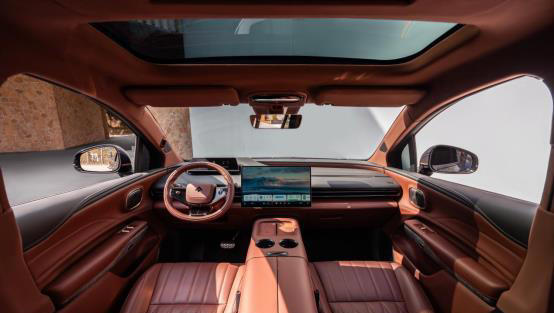 再从车内开始了解,昊铂HL的座舱布局采用宽阔的游艇环抱式设计,整个山海远望仪表台融入山海意境,细腻的缝线沿着仪表台向两侧覆有大面积软性面料的门板侧伸展,四门饰板和副仪表台以美国东部百年白栓带影木进行装饰,搭配触感细腻的悬浮式哑光音响盖,座舱工艺和用料令人眼前一亮,自然豪华仿佛触手可及。视线聚焦在前排屏幕上,17.3寸巨幕屏拥有3K高清分辨率,搭载骁龙8295芯片,底层硬件算力扎实,配合新一代Pad界面交互设计,操作流畅无延迟卡顿,语音识别精准度较高,且语义理解能力强。