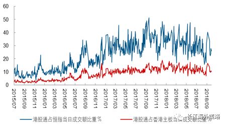 图 8:“南下”港股通交易额占主板和恒指比重情况(%)