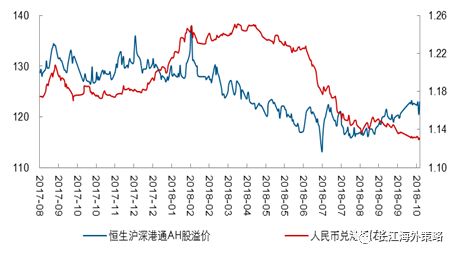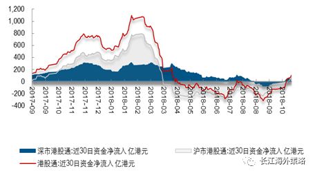 市场资金面:截止于2018年10月19日,上周近30日港股通资金净流入规模按周环比上升63.24亿至103.23亿港币,南下增量资金已连续两周录得“净流入”,反映港股上升动力或逐步增强。期间,港股通占恒指成交额比重按周环比攀升0.51pct至26.14%。海外资金方面,上周美元指数收报95.6698,涨幅0.43%;美元兑港币1年远期贴水收报-363bp,贴水按周环比扩大44bp,反映海外资金亦或有流入迹象。整体来看,考虑到南下增量资金和海外资金均有流入迹象,以及3个月HIBOR自9月底的高位回落,料港股市场资金面或整体趋于改善。