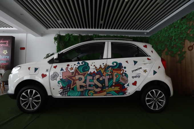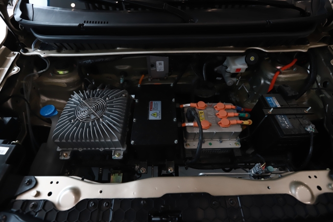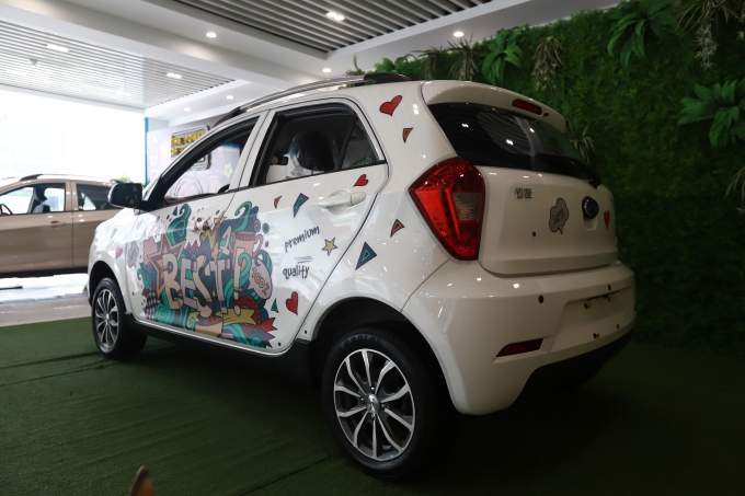 在店内我们看到了两台展车,市场总监黄总告诉我们其他展车被派往参加活动。在店内的两台展车都是目前御捷在主打的E行,综合续航300km,搭配三元锂离子电池,最大功率42KW最大扭矩150Nm,充电时间8小时。可惜的是在店内的两款车均是17款E行,黄总告诉我们6月的深港澳车展后18款的E行才会到店,并且在外观上并不会有太大变化,会在配置上进行升级。E行长宽高分别为3675(配备行李架为3749)/1655/1570mm,轴距为2385mm。御捷新能源E行采用六边形三横幅式镀铬进气格栅,搭配两侧透镜大灯,整体更显稳重,下方雾灯区域配有LED日间行车灯。
