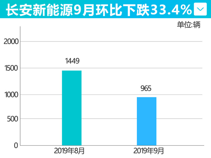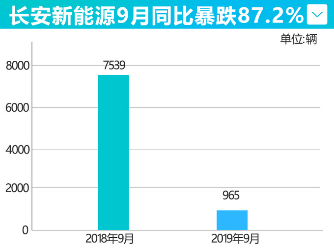 重庆长安汽车股份有限公司日前公布了9月份销量数据,其中新能源汽车9月份销量为965辆,同比暴跌87.2%,环比大幅下跌33.4%,今年全年累计销量仅为29048辆,具体每款车型销量数据并未公布。