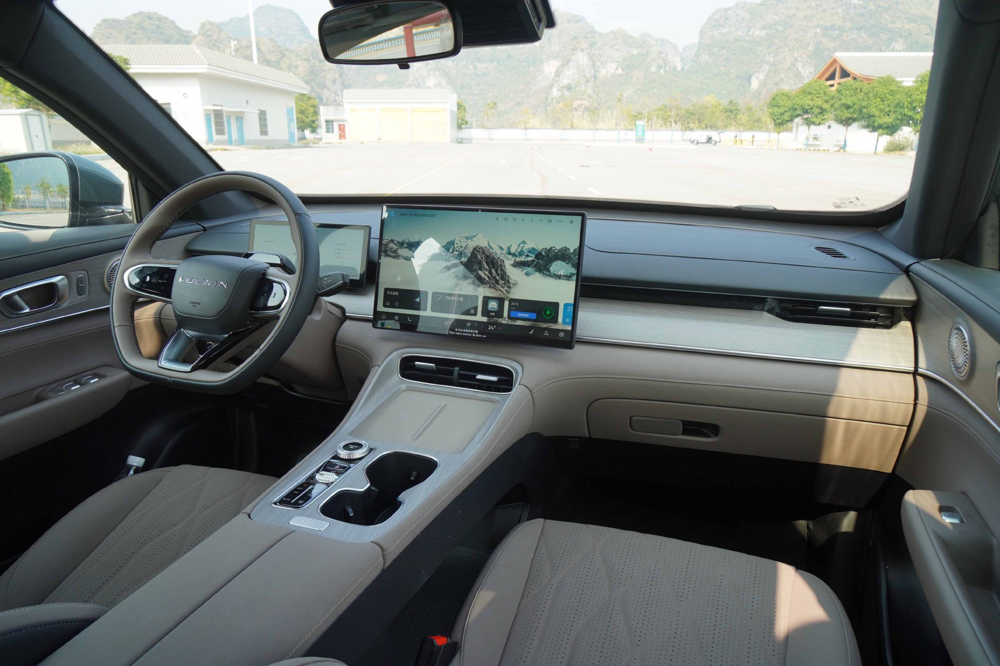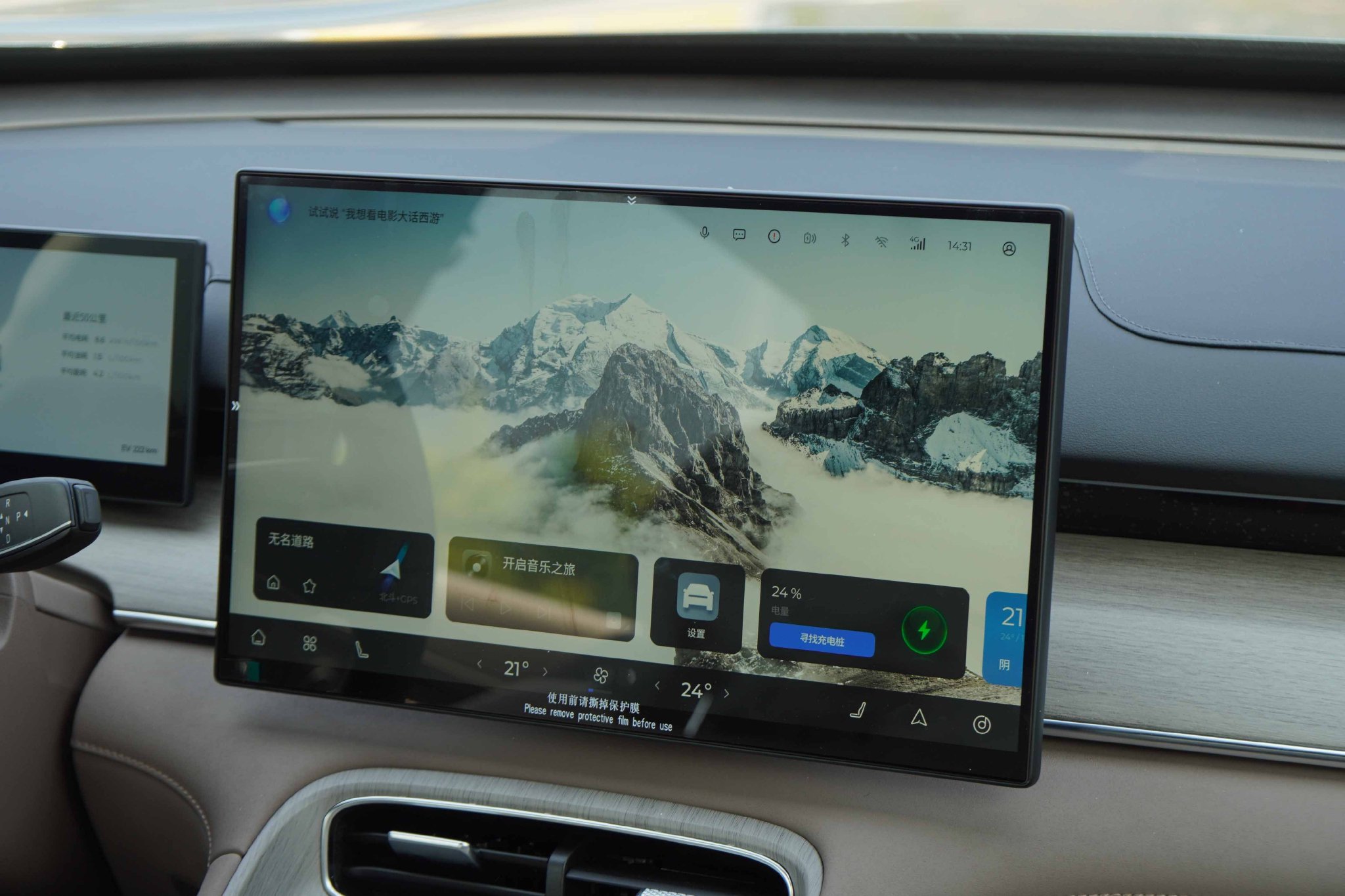 智能配置方面,中控台配备15.6英寸多媒体屏幕,分辨率达到2.5K,整体显示效果清晰细腻。硬件部分,屏幕内置8155车规级芯片,操作流畅度还是非常高的,并且支持在线娱乐、在线导航、手机互联、语音交互、APP下载、OTA升级等功能,并且还有540°透明底盘、256色氛围灯等配置。