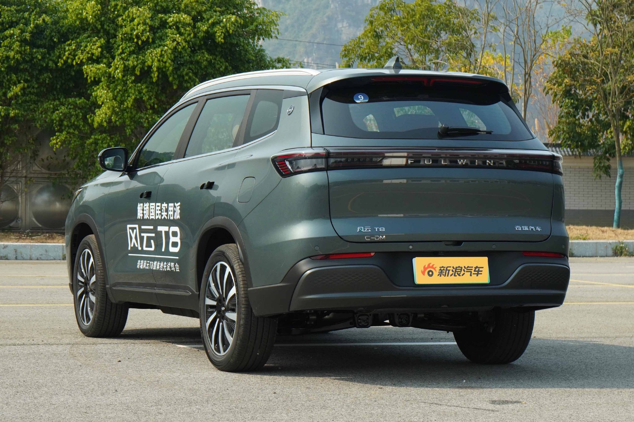 尾部造型简约精致,配备的贯穿式尾灯组具有很好的视觉效果。底部双色的保险杠护板则突出了车尾的层次感。另外,车尾部的风云T8以及C-DM标识也清晰的体现了其车型身份。