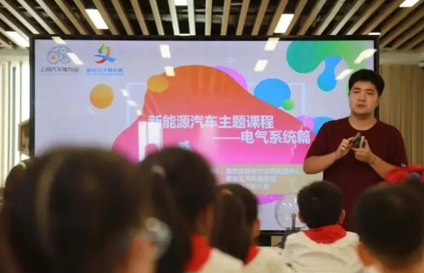 “你们知道汽车的能量来源有哪些吗?生活中哪里会用到‘电’?”随着上海汽车博物馆工作人员黄淞的提问,一堂生动有趣的科普课正式开讲。他以深入浅出的方式,结合生动的案例和互动实验,向学生们揭示了新能源汽车背后的科学奥秘。