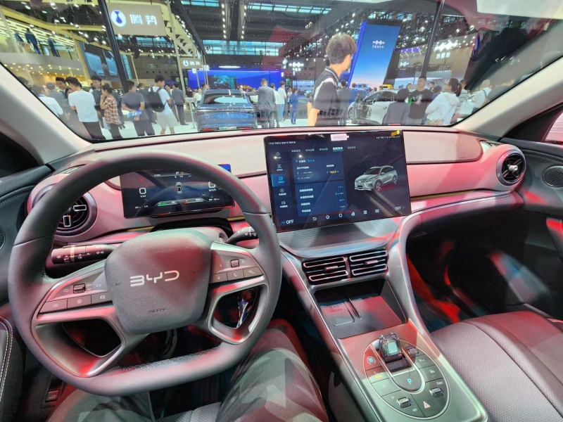 显示仪表:车内采用深色内饰,搭配悬浮仪表台和全液晶仪表盘,以及15.6英寸自适应旋转悬浮Pad,内置比亚迪DiLink智能网联系统,提供便捷的智能化操作体验。