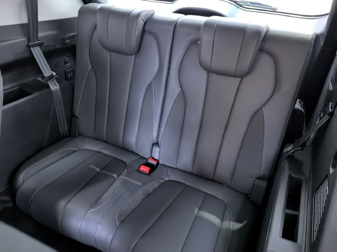 三排的空间表现只能说是中规中矩了,虽然不是很宽敞,但是也并没有坐不进去的尴尬,儿童乘坐或者临时救急还是一点问题都没有的。不过五座和七座版车型的第二排是没有这些豪华配置的。