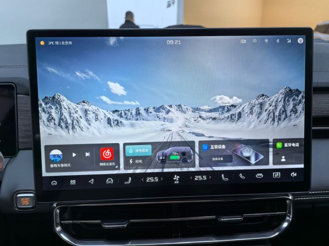 15.6英寸的中控屏幕将会搭载8155车规级芯片,整体的处理速度和能力都是当前的主流水平,并且屏幕的UI设计也是更加人性化,我们常用的功能都放置在了屏幕的最下方,图标显示也是更加准确。