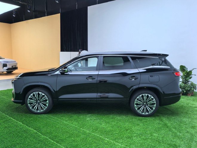 车身侧面的线条变化不是很大,车辆的长宽高分别为4911x1925x1784mm,轴距2850mm,从而提供五座、六座和七座版车型,给消费者带来了更多的选择空间。新车并没有使用隐藏式的门把手,传统的设计可以确保使用时的便捷性。