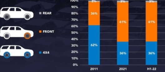 2022年前6个月,在欧洲销售的SUV中,只有36%是全轮驱动。23%在中国,但美国达到73%。