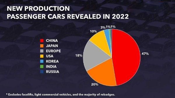 统计中最有趣的数字是中国制造商生产的新车占总数的47%。