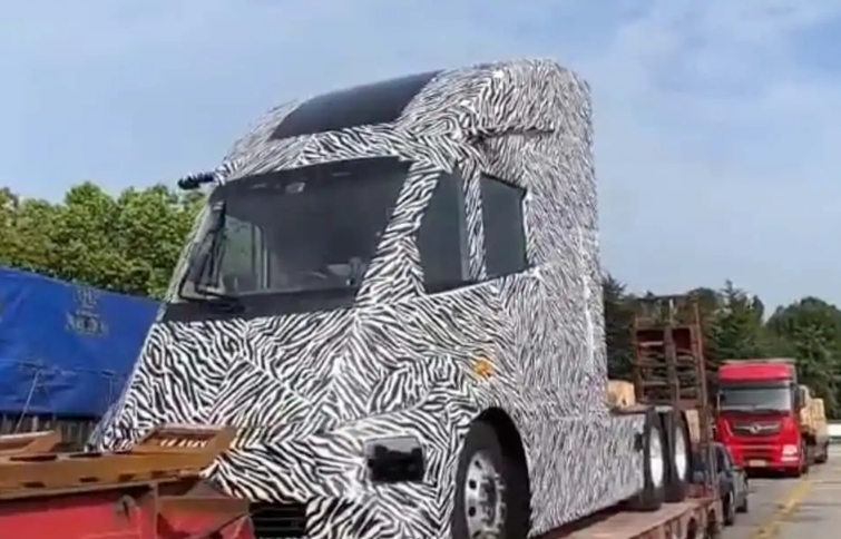 特斯拉 Semi 的大批量生产尚未开始,但中国的复制品似乎已经出现。一位特斯拉车主在中国的一条高速公路上发现了一辆与它相似的 Semi——这辆伪装的测试骡子躺在一辆拖车平板上,显然是在运输途中进行夏季测试。
