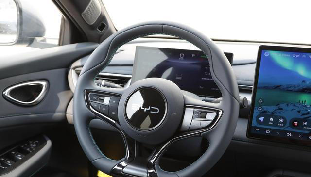 至于内饰的设计方面,相对来说就显得比较简约了,采用比亚迪海洋网系列家族特有的设计理念。方向盘设计极具特色,中控台对称排列,波浪形线条融入其中,整体充满现代气息。水晶挡把让车内更显高档,中间配备15.6英寸悬浮屏,入门版则为12.8英寸,全系标配10.25英寸液晶仪表盘,悬浮屏略显凸出但毫无突兀感。除最低配外均配置L2级驾驶辅助功能,日常驾驶体验便捷许多,尤其是对女性驾驶者而言。
