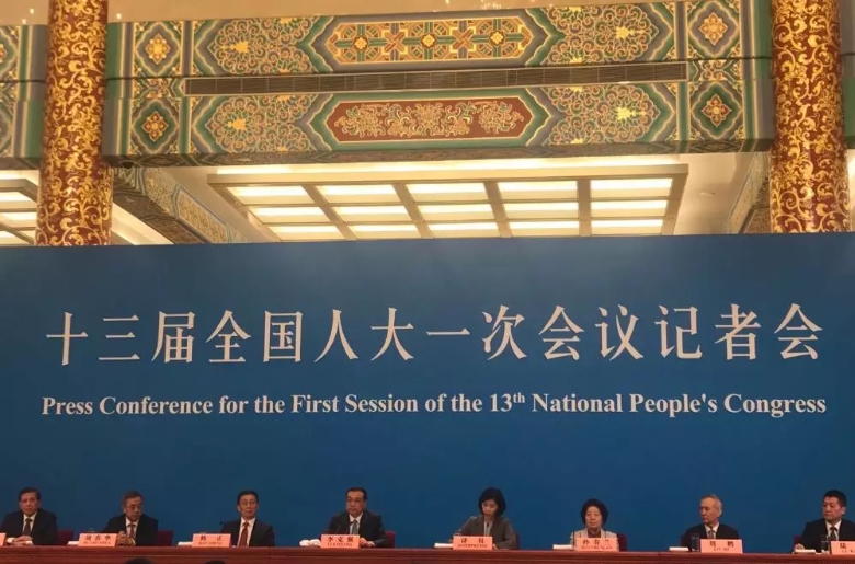 20日上午,十三届全国人大一次会议闭幕后,国务院总理李克强在人民大会堂金色大厅会见采访十三届全国人大一次会议的中外记者并答记者问。