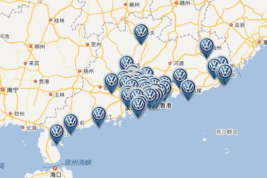 【广东省一汽大众4S店分布,一共有51家,其中42家都在珠三角,其余12城市平均一个市不到一家店】