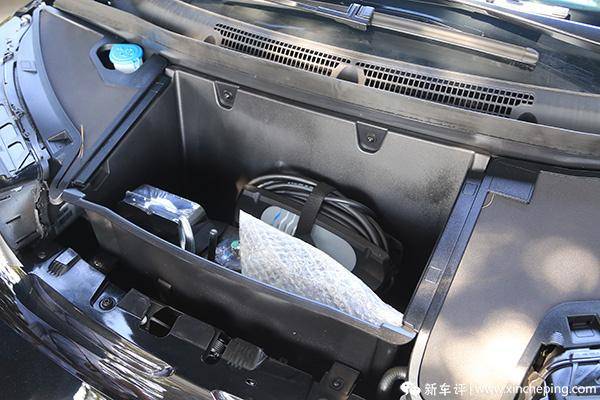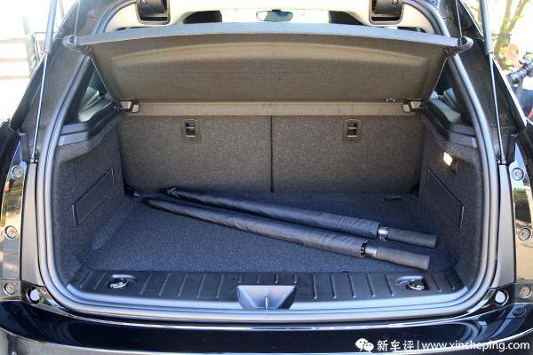宝马i3空间方面做得更出色的是储物空间的布置,尾厢可以放得下两个20英寸的行李箱,车头还有个小行李箱,可以放一些随身的背包,一家三口进行一个短途旅行是绰绰有余的。