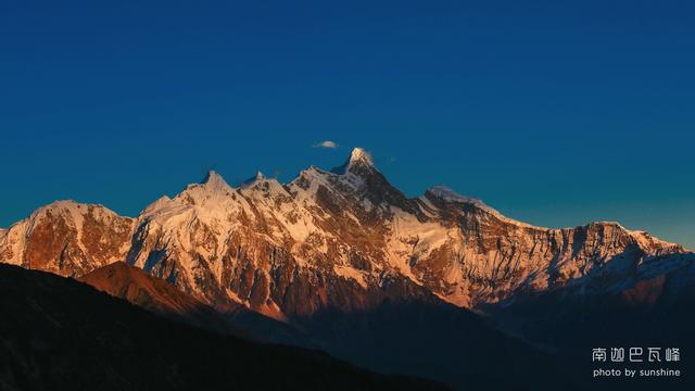 南迦巴瓦峰藏语意为“直刺蓝天的战矛”,主峰高7782米,高度位列世界第十五位,此前的十四座海拔均在8000米以上。因其整体落差大,周边动植物多样,曾被评为中国最美的雪山。南迦巴瓦峰山脚处温泉众多,植物异常茂密,是理想的探险登山及疗养圣地。
