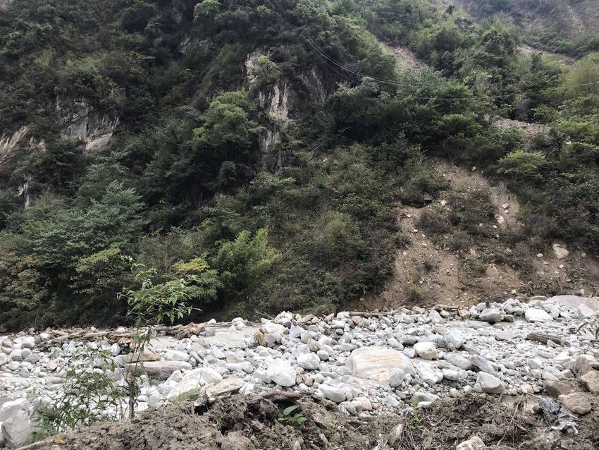 今天去了几年前去过的沙排村,带儿子体验原始隧道,从映秀下高速走国道,在草坡乡调头下国道,一路过去发现,今年夏天的大水太厉害了,几个沿河的聚居点都被冲毁了
