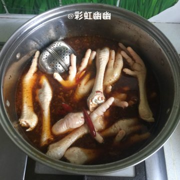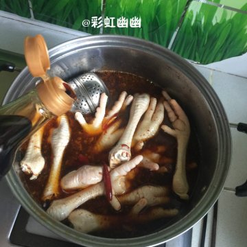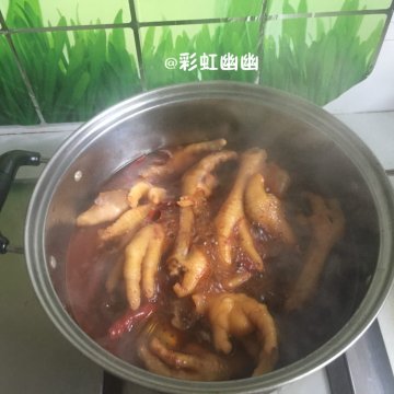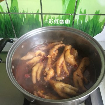 8. 关火,盖锅盖,鸡爪浸至卤汤稍凉了再取出;