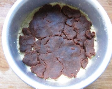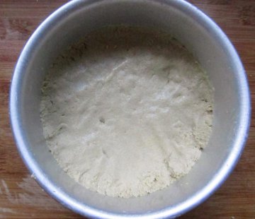 4. 揉搓成面团,放入6寸模具中抹点油铺一层小米。