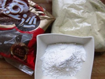 2. 小米粉、糯米粉和糖粉混合在一起。