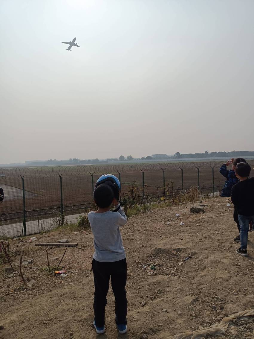 走左边是儿童游乐区和跑道北头川航基地边的观景台。