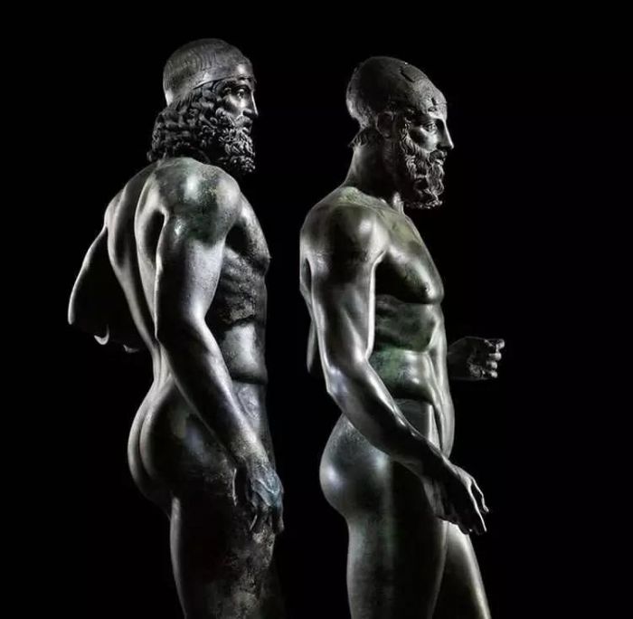 大部分文物都来自希腊遗址,一座希腊坟墓里埋葬着一位年轻女子,她佩戴着装饰有宝石的公羊头形状耳环和金龟子形状的戒指,嘴里还有一块金币,也许是用来支付去往另一个世界的路费。我们在惊叹中漫步,来到了两座青铜战士雕像旁。这两具壮观的男人身高在195厘米左右,是1972年在离爱奥尼亚海不远的Riace地区发现的,脚下刻着他们的名字 :一个叫战士A,一个叫战士B。这两位战士的臀部结实紧凑,胡须也修剪得很整齐,果然是来自“另一个世界”啊。这些神秘而古老的访客塑造了卡拉布里亚,它既充满感官诱惑,又满不在乎,古老、猛烈而又骄傲。