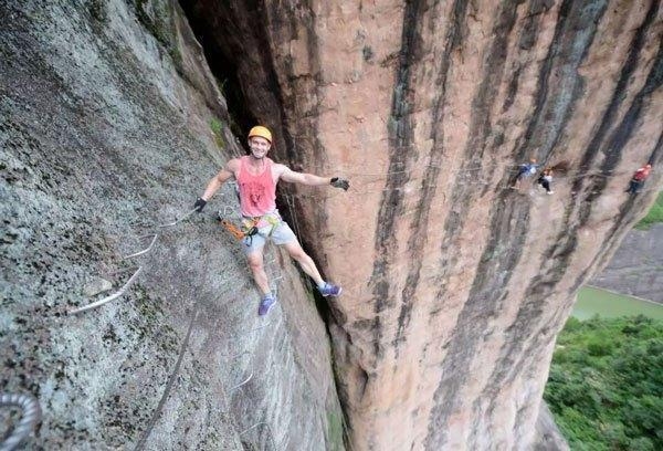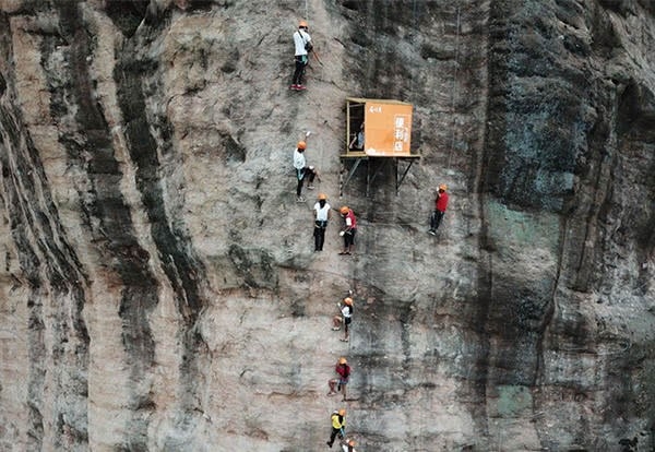 还好还是会有良心的地方,这个被游客成为最良心的景区,在百米悬崖上,位于湖南平江石牛寨景区,距离地面100多米高,买卖商品均需要攀岩走壁。