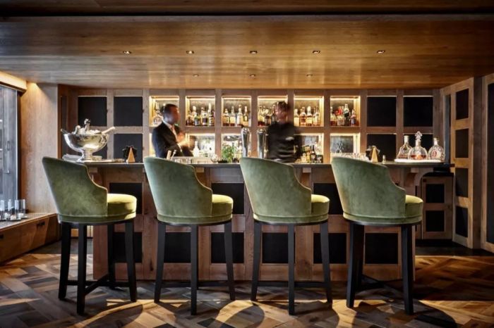 晚餐过后,月光将雪场变成淡蓝色,脚踩雪光回到酒店。临睡前在小酒吧里小酌一杯,不让悠闲的一天留下遗憾。