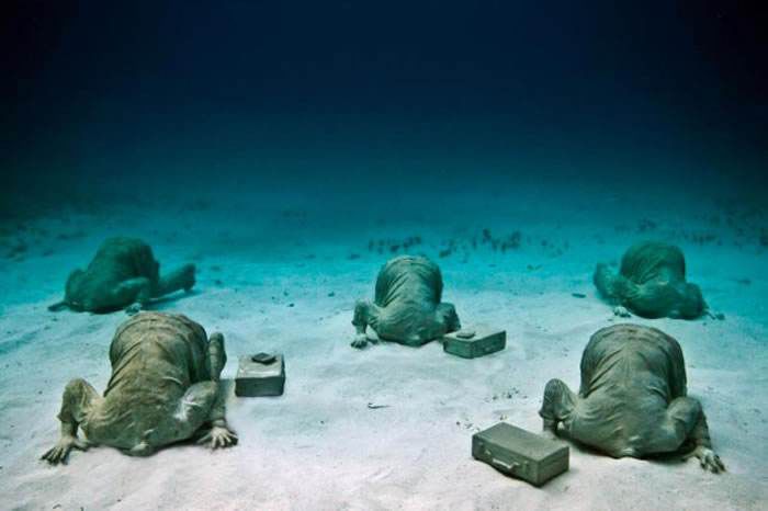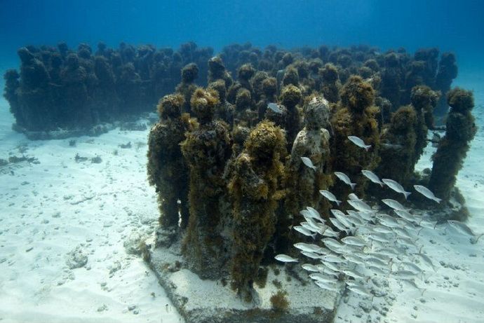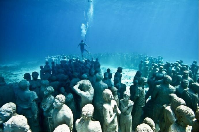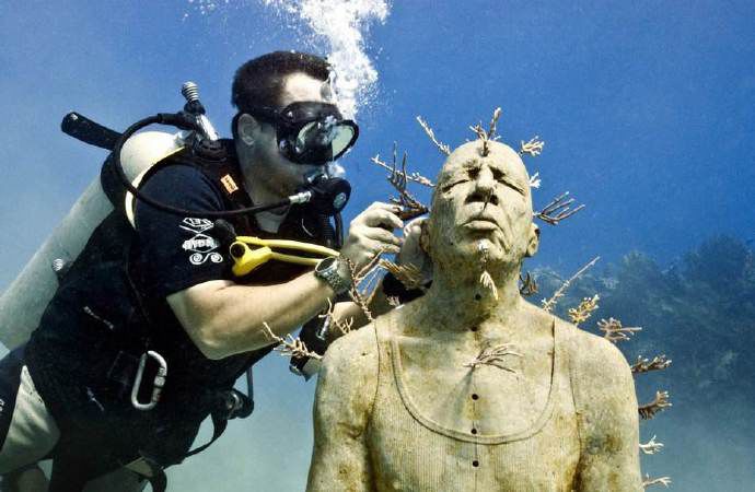 2009年,詹森应坎昆海洋公园经营者之邀,以当地人为原型,将200吨雕塑沉入海底,建造了当时全球唯一一座海底博物馆,成了每年80万游客去坎昆潜水的又一大吸引点。