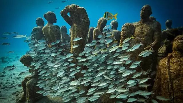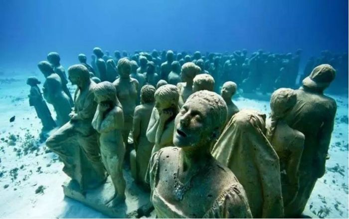 在加勒比海北部的坎昆,就有这样一座海底雕塑博物馆,隐藏于海浪下8.4米深的地方,占地420平方米,由400多个人形雕像组成,看上去相当宏伟壮观,有人说这是墨西哥版本的兵马俑,也有人说这是现实生活中的 “亚特兰蒂斯”。