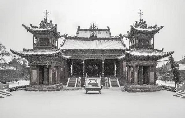 稷王庙始建于元代,清道光年间失火后重建,系琉璃,木刻和石雕三者艺术汇为一体之“三绝”古建群。雪花纷纷扬扬的飘洒,寂寥的稷王庙更显得悠远深邃,仿佛可以穿越时空古今对话。