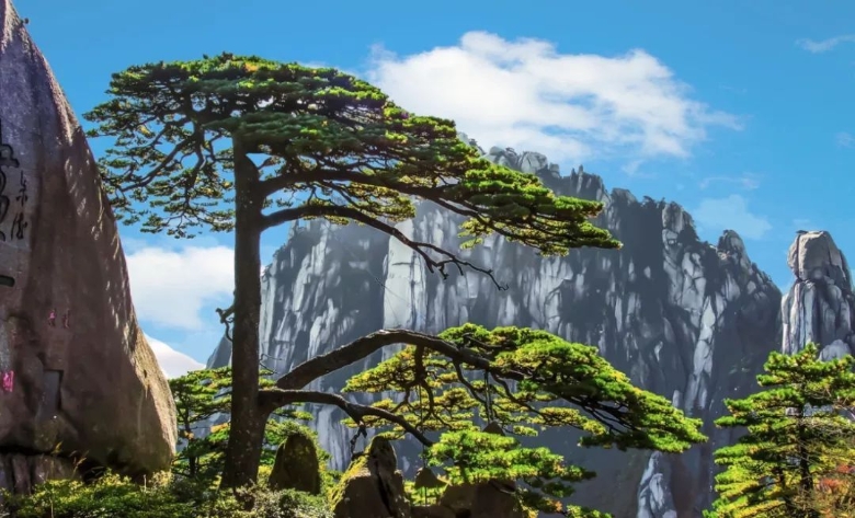 黄山:这是世界自然与文化双重遗产,我国十大名山之一,位于安徽黄山市境内。黄山有七十二峰,主峰莲花峰海拔1864米,与天都峰、光明顶并称为三大主峰,黄山是安徽旅游的标志,我国十大风景名胜中唯一的山岳风光。四绝三瀑是黄山的代表景观,四绝:奇松、怪石、云海、温泉;三瀑:人字瀑、百丈泉、九龙瀑。
