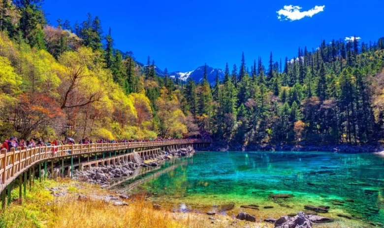 九寨沟:这是一条纵深五十多公里的山沟谷地,位于四川阿坝州境内,因沟内有九个藏族村寨而得名。这里最美的风景是海子,“九寨归来不看水”就是最好的诠释,这里的泉、瀑、河、滩达数百之众,构成一个个五彩斑斓的瑶池玉盆,加上周围的森林植被,一到秋天就成了最美的季节,五彩斑斓。