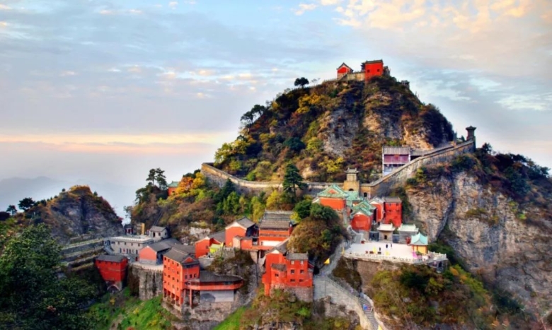 武当山:这是我国本土宗教——道教的圣地,也是武当武术的发源地,位于湖北十堰市丹江口市境内。武当山有“亘古无双胜境,天下第一仙山”的美誉,以天柱峰为中心有上、下十八盘等险道及“七十二峰朝大顶”和“金殿叠影”等景点;武当山古建筑群入选了世界遗产名录。