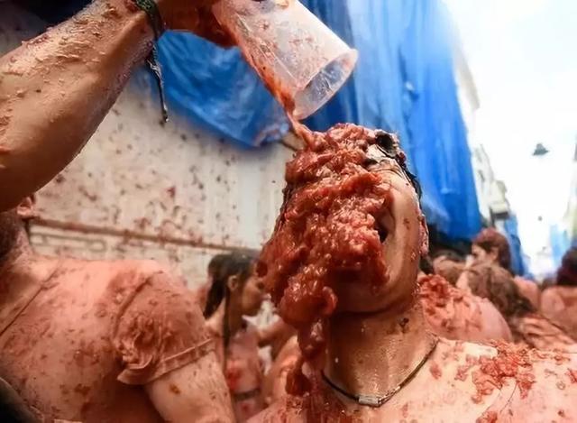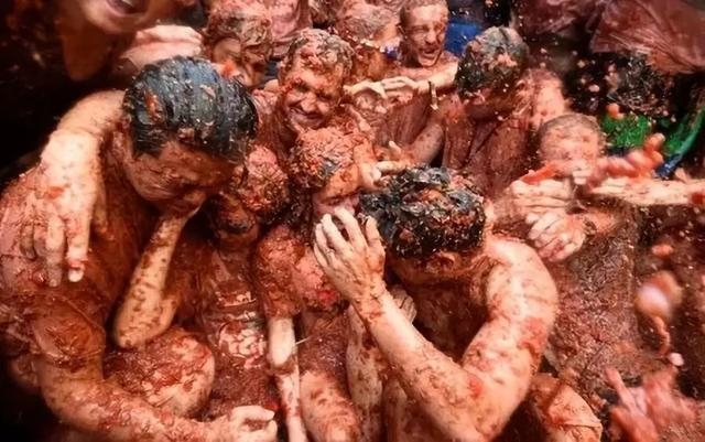 这场西红柿大战被称为“全球最大规模的食物混战”,粗略计算当天共消耗了近3万斤西红柿,整条街都覆盖上厚厚一层西红柿酱。