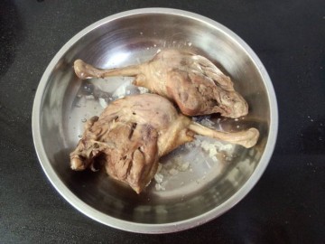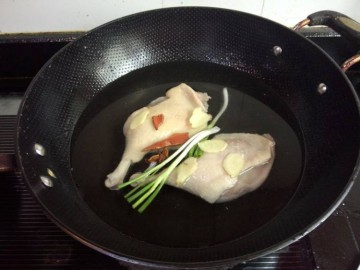 6. 锅里放入适量清水,放入鸭腿,煮开5分钟,捞出鸭腿漂净。