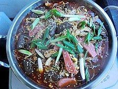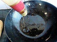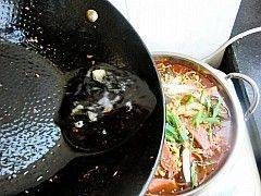 17. 把毛血旺盛出,锅中加入香油烧热。