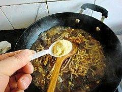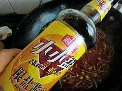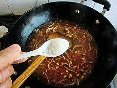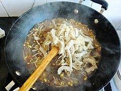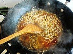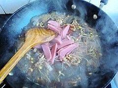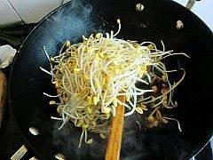 8. 倒入摘洗干净的黄豆芽翻炒。