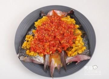 5. 蒸箱预热后,放入鱼头蒸10-15分钟即可(时间视鱼头大小而定)。