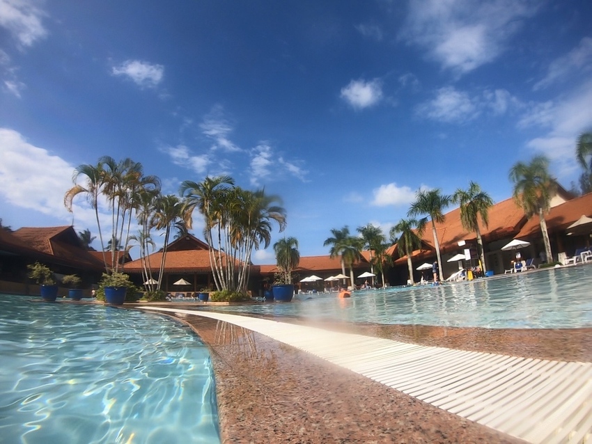 从吉隆坡转机关丹,很多人到马来西亚都会选择兰卡威、槟城和马六甲,可Club Med选择关丹作为亚洲最大最早的度假村,还是看中了这里地广人稀,生态环境较为贴近度假村的整体要求。从关丹机场坐车也是足足一个小时左右才到了度假村,一进大门就能感受到热带风情花园的魅力,园林绿荫成宥,接待大厅热情的中文G.O送上迎宾饮料安排我们休息,在我们的房间还没打扫入住前,我们可以在大厅尽情享受马来度假村风情。