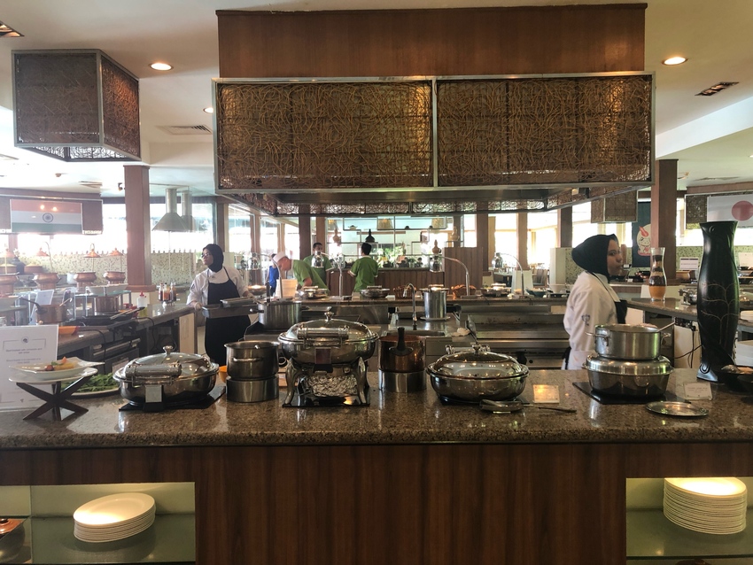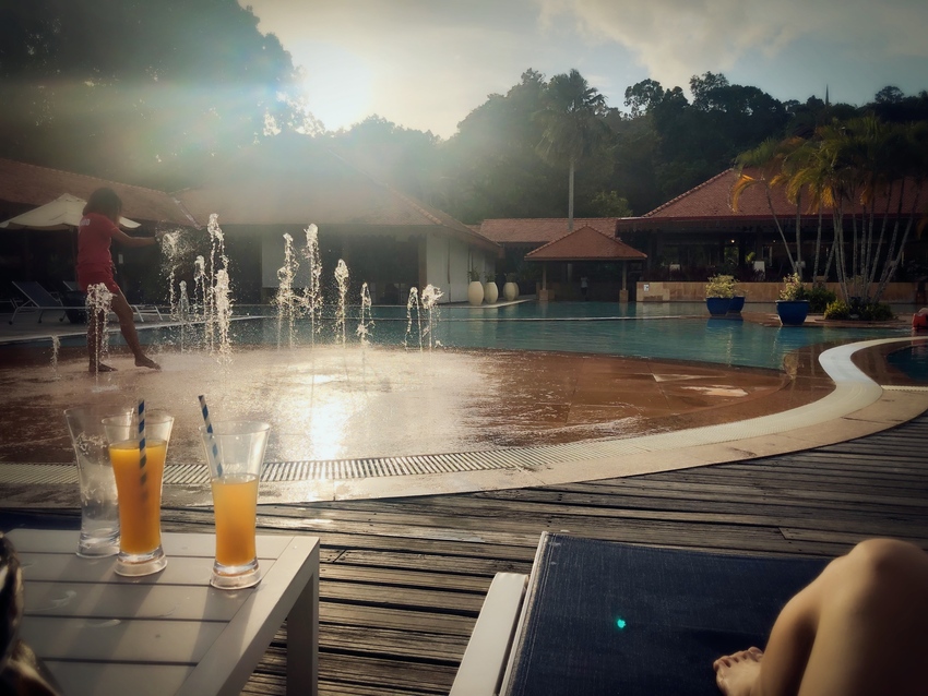 春节前后大马的气温都不错,临海太阳不算大,但是也足够感受亚热带海洋气候的温暖。度假村的节目安排非常丰富,客人除了可以每天享受无限量供应的鸡尾酒和各种小吃甜点下午茶,三餐都可以在环球美食自助餐厅享用,就算你贪睡错过了早餐,也有全天候的Noodle Bar 可以续供。能被誉为最佳亲子度假俱乐部也不是浪得虚名的,对于4岁以上的带孩子家庭,完全可以享受到Mini Club从早上8:30到下午16:45的入营活动,家长就可以享受自己的假日时间,而且空中飞人、射箭、水上运动一系列不重样,小孩儿有专门的G.O照顾和陪伴,大人省心又省力。俱乐部也安排了系列运动课程,早上的瑜伽、韵律操、水上运动,都有教练带领练习,真正实现大人小孩儿各得其乐。每天早上我送女儿入营,下午接她的时候她玩得乐不思蜀,基本都要忽略我的存在了。