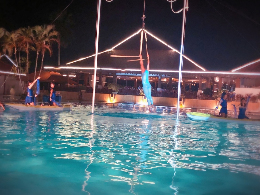 每天晚上都有丰富的主题派对节目和秀,秀完了就会在大厅有动感的DJ打碟,团队的G.O站台带动客人们一起舞动起来,特别动感和热情,整个现场气氛都嗨爆了,这里的员工真是全能啊,白天可能是大堂或者餐厅的工作人员,医疗室的医生,孩子的Baby sister,运动项目的教练员、游泳池的救生人员,晚上摇身一变就跟各个团队的经理们把舞衣战袍披上动感闪亮登场了,整个团队的感染力特别地好,俱乐部从上到下都充满着和谐友好热情的因子,让人在这里感到非常愉快。