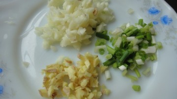 4. 小碗里放入1勺盐,半勺糖,半勺鸡精加少许水搅匀。