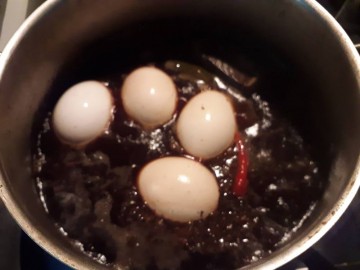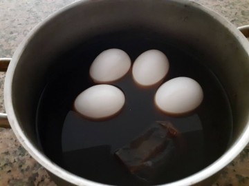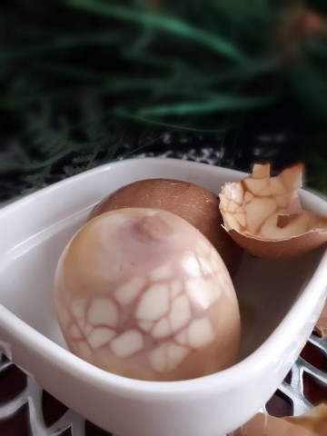 4. 煮熟后把鸡蛋敲碎冰箱浸泡1-2天。