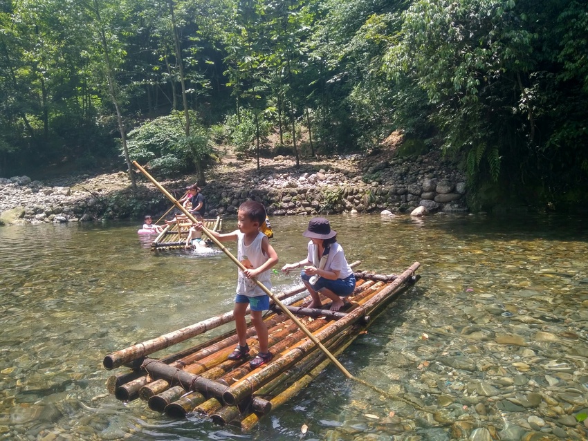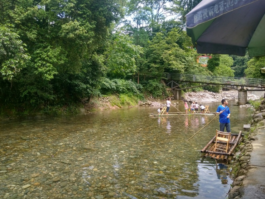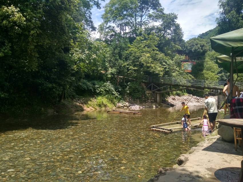 这一块就是农家乐老板拦起来给游客划竹排泡水耍的,顺着水一路都可以耍。